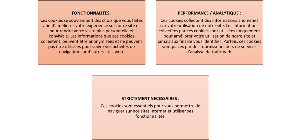 Comme sur la plupart des sites internet, notre site internet utilise des cookies qui peuvent être classés en trois catégories :